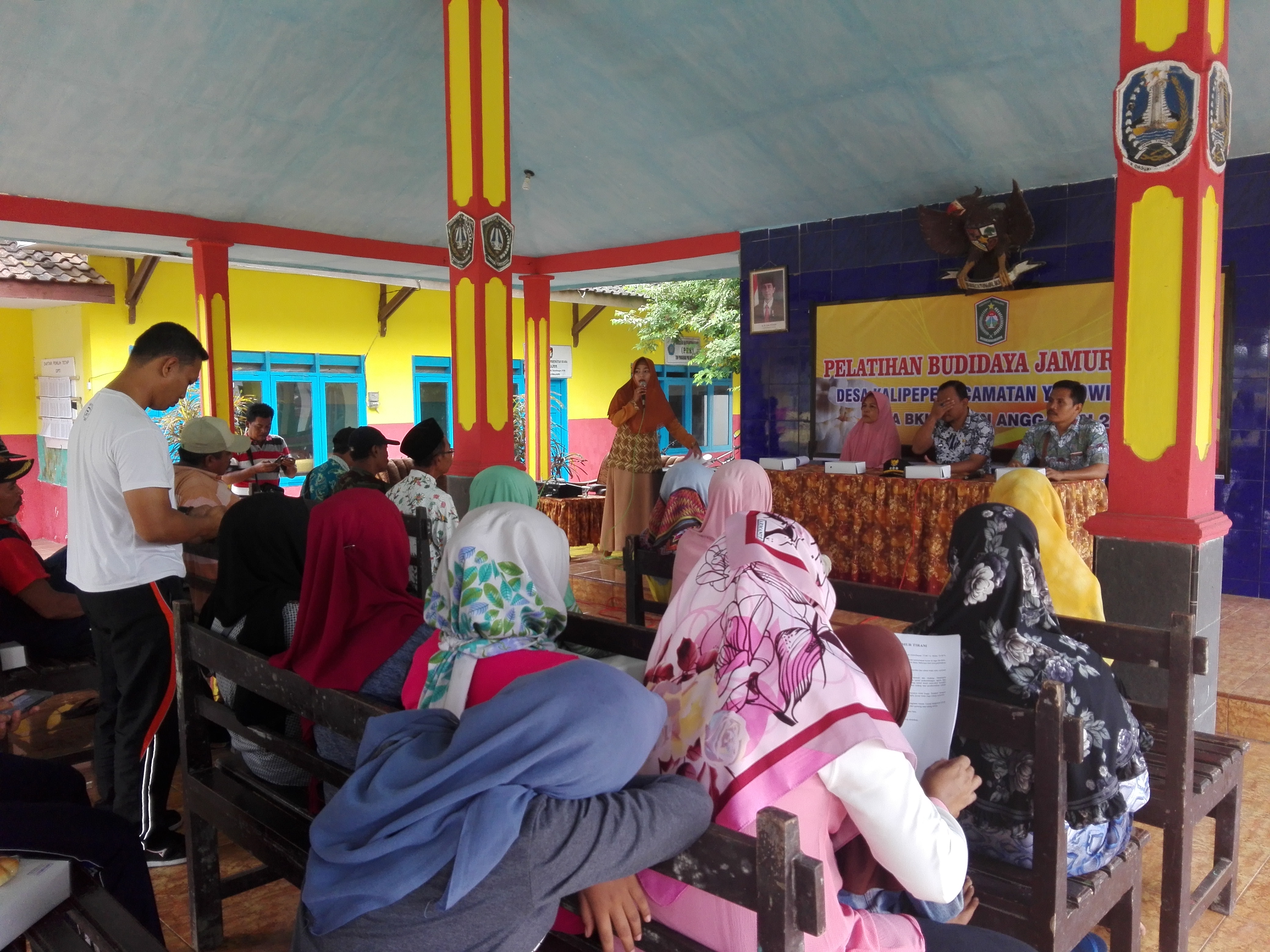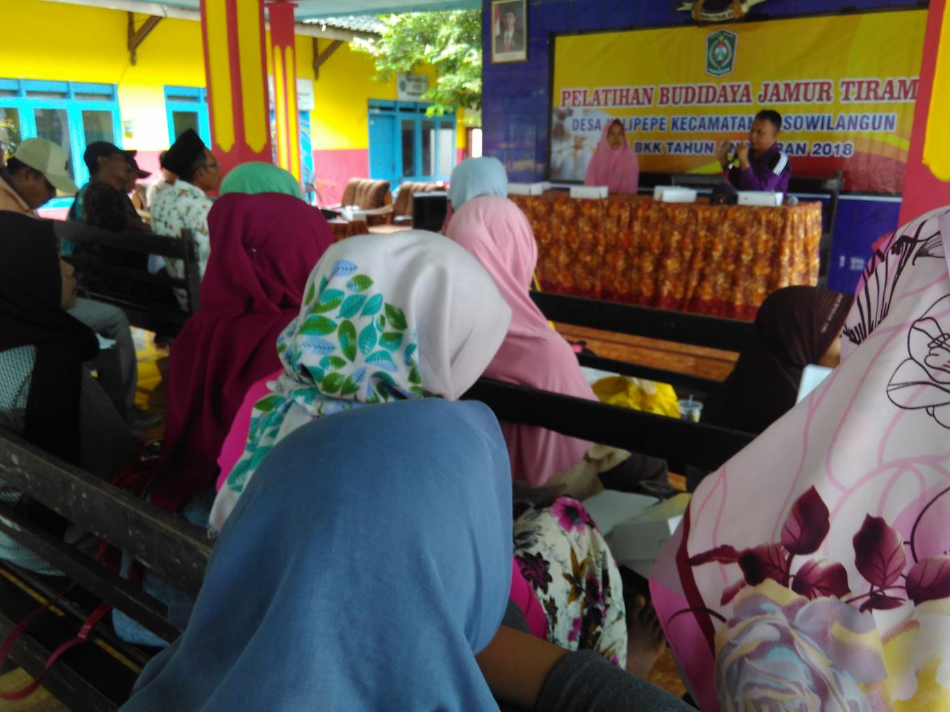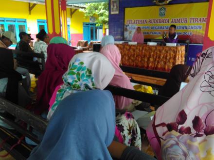 pelatihan budidaya jamur tiram, dilaksanakan pada hari jumat tanggal, 6 juli 2018 jam 08.00 wib, yang bertempat di balai desa kalipepe, dengan dihadiri oleh 35 orang dan diawali oleh pembukaan, sambutan kepala desa, sambutan camat yosowilangun Bapak Yonie Nurcahyono, beliau mengapresiasi atas diadakannya pelatihan ini semoga nantinya ada wirausaha baru yang bisa tumbuh di desa kalipepe